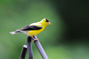 Goldfinches begin to molt into their brilliant yellow plumage.