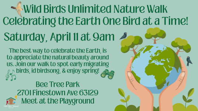 April is Earth Day month and we are celebrating by getting out & enjoying nature! Join us to look for early migrating birds, listen for & id birdsong, and spot spring blooms & buds. Please bring binoculars, if you have them, and to further enhance your experience, download the Merlin and/or eBird apps to your phone. We'll give you tips on using them to locate, id, and track birds. Please meet at the playground.