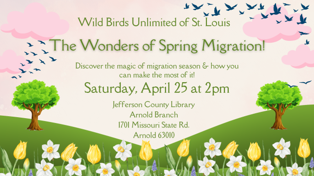 Join us at the library! We'll be participating in the library Flight Path Project day with a talk about the many wonders of spring bird migration. From which birds arrive first, to the feeders & foods they prefer, to how to id them, Team Specialists Ariel & Brandon have the scoop.
