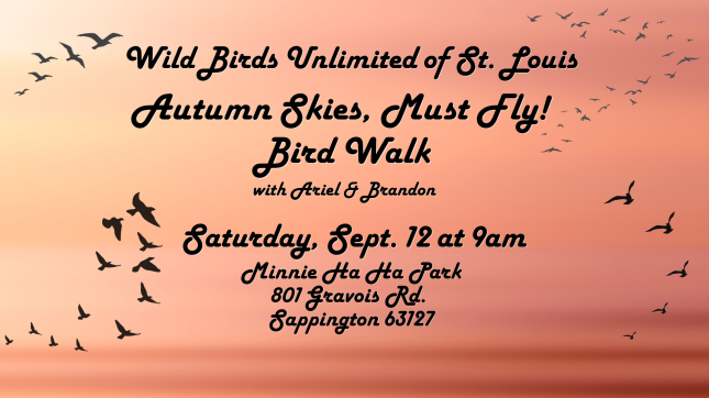 It's that time of year when birds start to feel the call to fly to their next destination! Many birds begin their fall migration in September, it's a fantastic time to see which birds are stopping over in Missouri. Team Specialists Ariel and Brandon will guide you through Minnie Ha Ha Park to look and listen for September bird residents and passer-throughs.