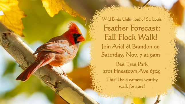 Feathers & fall leaves will be on our to-see list! Join Ariel and Brandon to discover which birds can be spotted and heard, and which ones will stay through winter.
