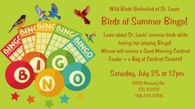 Follow us on Facebook or call the store at (314) 270-9700 for upcoming events and Bird Walks!